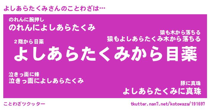 | 肩書あだ名 | 『よしあらたくみ御曹司』 |