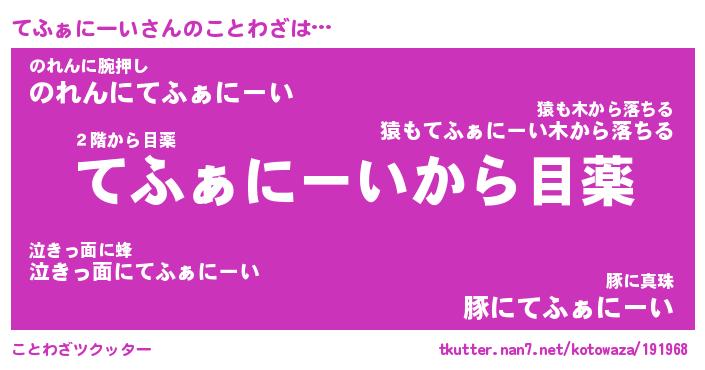 | 胡散臭い通販商品みたいなあだ名 | 『億万長者になれる霊験あらたかなお札…その名も「てふぁにーい」』 |