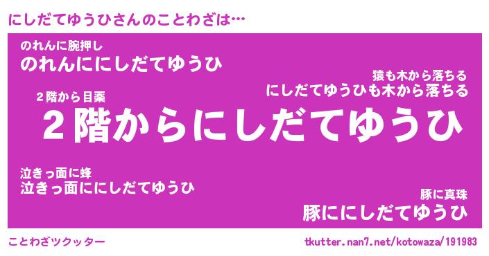 | 胡散臭い通販商品みたいなあだ名 | 『必ず成功する霊験あらたかなお札…その名も「にしだてゆうひ」』 |