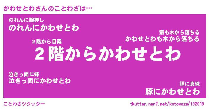 | 胡散臭い通販商品みたいなあだ名 | 『必ず成功する霊験あらたかなお札…その名も「かわせとわ」』 |