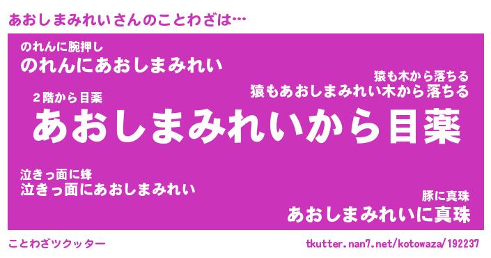| 胡散臭い通販商品みたいなあだ名 | 『億万長者になれる霊験あらたかなお札…その名も「あおしまみれい」』 |