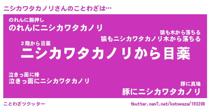 | 女子向けラノベタイトル風あだ名 | 『誰かこのニシカワタカノリを説明してください! ~契約から始まるウェディング~』 |