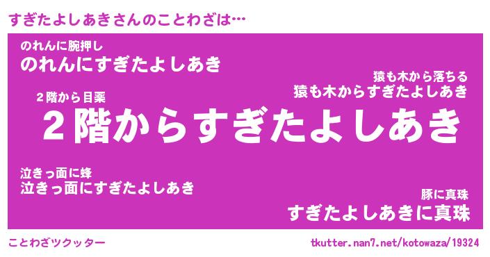 | 胡散臭い通販商品みたいなあだ名 | 『必ず成功する霊験あらたかなお札…その名も「すぎたよしあき」』 |