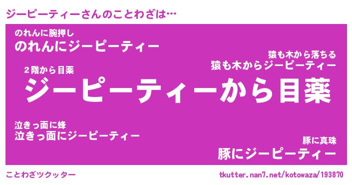 | 女子向けラノベタイトル風あだ名 | 『ジーピーティー姫と円卓の騎士』 |