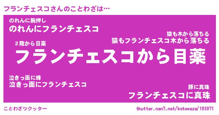 | 胡散臭い通販商品みたいなあだ名 | 『億万長者になれる霊験あらたかなお札…その名も「フランチェスコ」』 |
