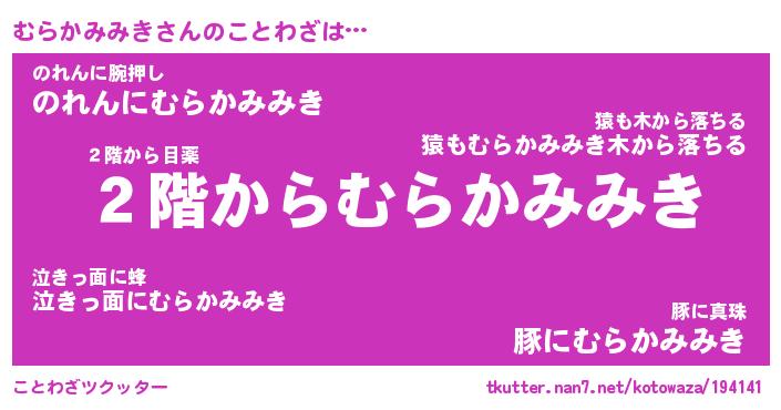 | 男性向けラノベタイトル風あだ名 | 『むらかみみきの憂鬱』 |