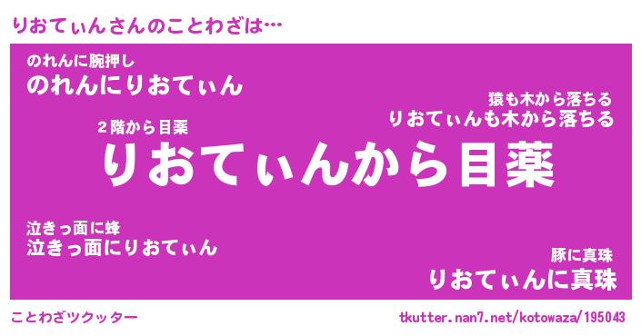 | 胡散臭い通販商品みたいなあだ名 | 『億万長者になれるブレスレット…その名も「りおてぃん」』 |