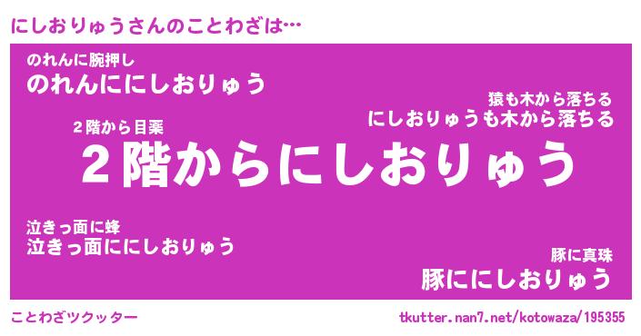 | 肩書あだ名 | 『にしおりゅう御曹司』 |