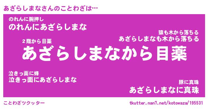 | ヘコむあだ名 | 『あざにー』『酢こんぶ』『あざ太郎』 |