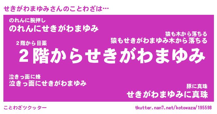 | 胡散臭い通販商品みたいなあだ名 | 『モテモテ間違いなし霊験あらたかなお札…その名も「せきがわまゆみ」』 |