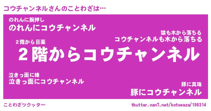 | 男性向けラノベタイトル風あだ名 | 『コウチャンネルの憂鬱』 |