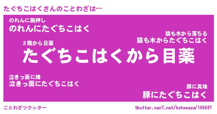 | 胡散臭い通販商品みたいなあだ名 | 『億万長者になれるブレスレット…その名も「たぐちこはく」』 |