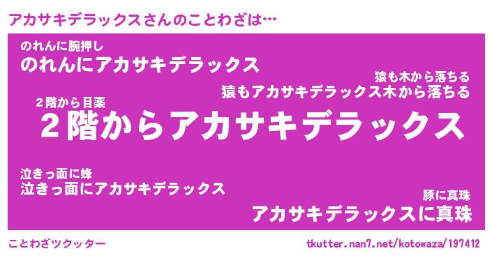 | 男性向けラノベタイトル風あだ名 | 『アカサキデラックスの憂鬱』 |