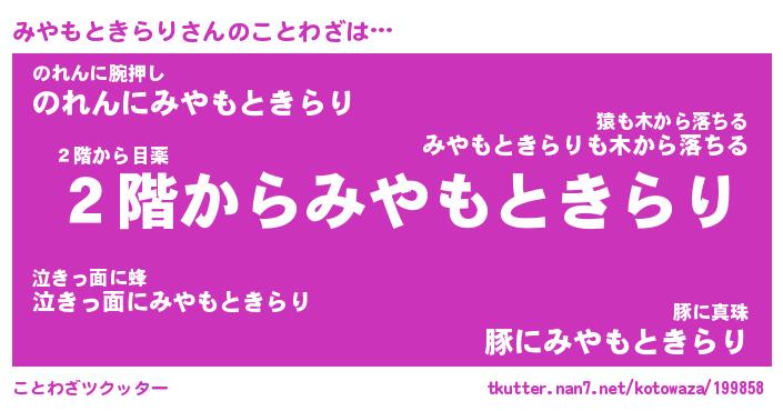 | ヘコむあだ名 | 『みやにゅー』『つくし』『みや太郎』 |