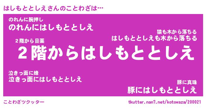| 男性向けラノベタイトル風あだ名 | 『はしもととしえの憂鬱』 |