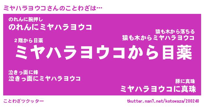 | ピコ太郎風あだ名 | 『ミコ六郎』『ピミ四郎』『ミヤ三郎』 |