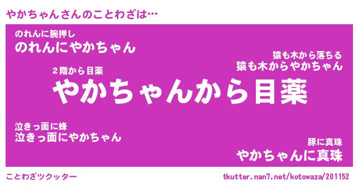 | 2回繰り返すあだ名 | 『やかやか』『ややかか』『ぬめぬめ』 |