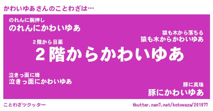 | ヘコむあだ名 | 『かわふぇ~』『酢こんぶ』『かわを』 |