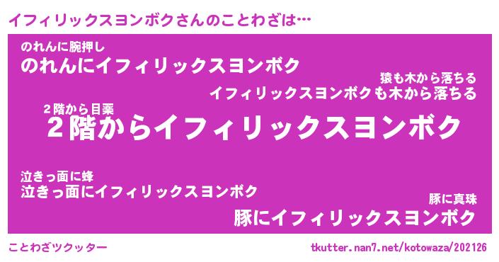 | 胡散臭い通販商品みたいなあだ名 | 『モテモテ間違いなし霊験あらたかなお札…その名も「イフィリックスヨンボク」』 |