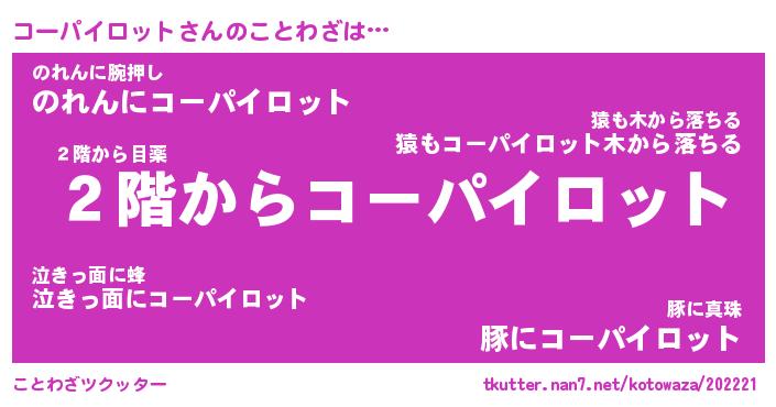 | 胡散臭い通販商品みたいなあだ名 | 『モテモテ間違いなし水晶球…その名も「コーパイロット」』 |