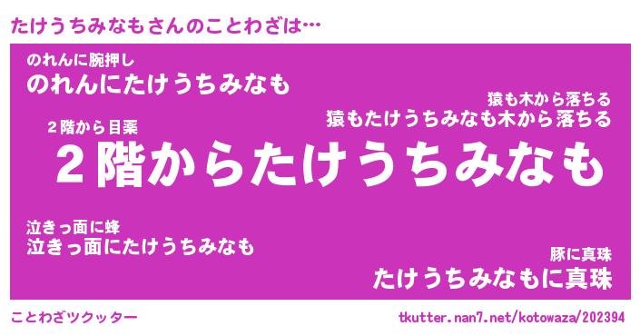 | 恥ずかしいあだ名 | 『プリティーたけうちみなも』『たけちん』 |