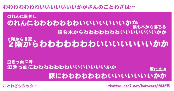 | 男性向けラノベタイトル風あだ名 | 『わわわわわわわいいいいいいいかかの憂鬱』 |
