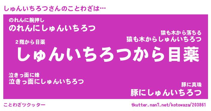 | 恥ずかしいあだ名 | 『プリティーしゅんいちろつ』『しゅちん』 |