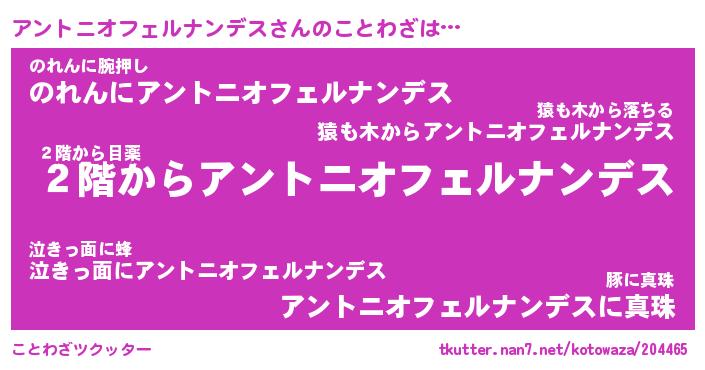 | 男性向けラノベタイトル風あだ名 | 『アントニオフェルナンデスの憂鬱』 |