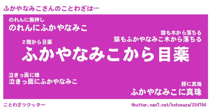 | ツイッター | ふかやなみこさんのツイッターID『namakemono_man』 |