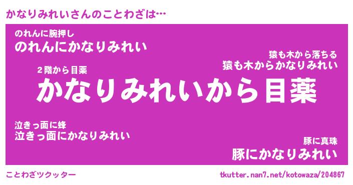 | ツイッター | かなりみれいさんのツイッターID『dendenmushi_idle』 |