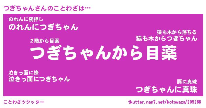 | ヘコむあだ名 | 『つぎにゅー』『酢こんぶ』 |