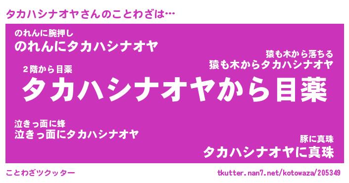 | 男性向けラノベタイトル風あだ名 | 『タカハシナオヤアートオンライン』 |