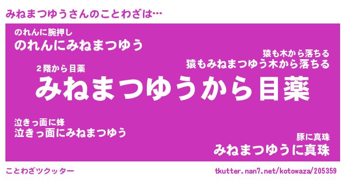 | 胡散臭い通販商品みたいなあだ名 | 『億万長者になれるブレスレット…その名も「みねまつゆう」』 |