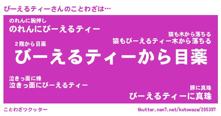 | ヘコむあだ名 | 『びーっふぃ~』『つくし』『びーを』 |