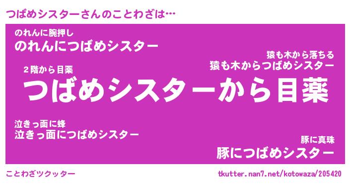 | 恥ずかしいあだ名 | 『プリティーつばめシスター』『つばちん』 |