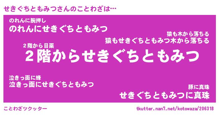 | 男性向けラノベタイトル風あだ名 | 『せきぐちともみつの憂鬱』 |