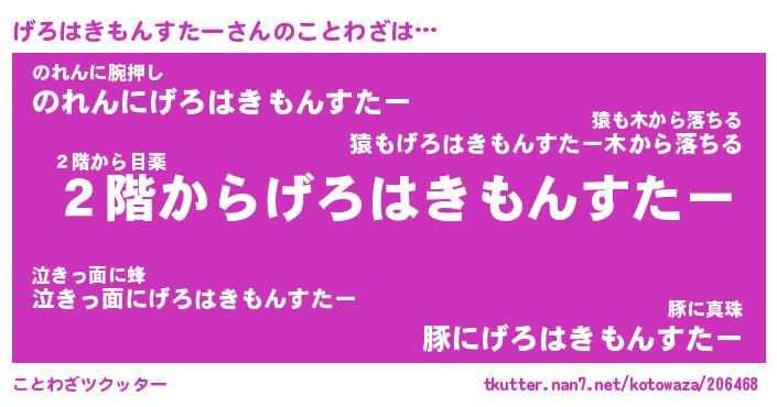 | 男性向けラノベタイトル風あだ名 | 『げろはきもんすたーの憂鬱』 |