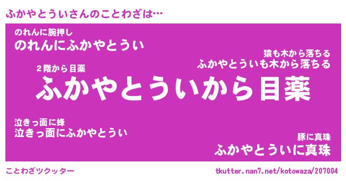 | 肩書あだ名 | 『ふかやとういCEO』『ふかやとうい教頭』 |