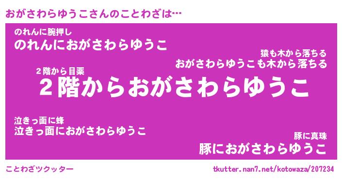 | 男性向けラノベタイトル風あだ名 | 『おがさわらゆうこの憂鬱』 |