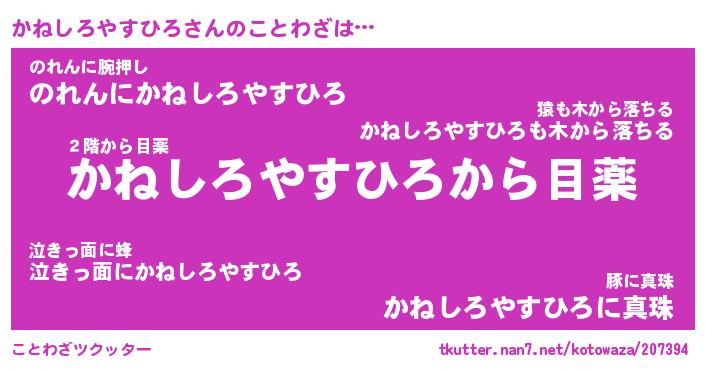 女子向けラノベタイトル風あだ名 | 『誰かこのかねしろやすひろを説明してください! ~契約から始まるウェディング~』 |