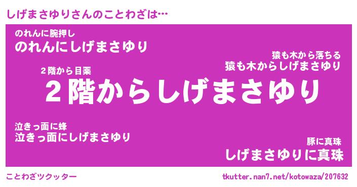| 胡散臭い通販商品みたいなあだ名 | 『必ず成功する霊験あらたかなお札…その名も「しげまさゆり」』 |