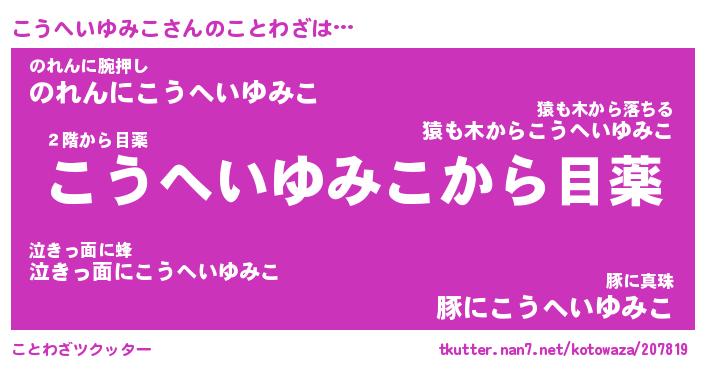 | 女子向けラノベタイトル風あだ名 | 『こうへいゆみこ姫と円卓の騎士』 |