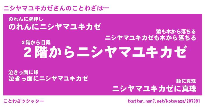 | 胡散臭い通販商品みたいなあだ名 | 『必ず成功するブレスレット…その名も「ニシヤマユキカゼ」』 |