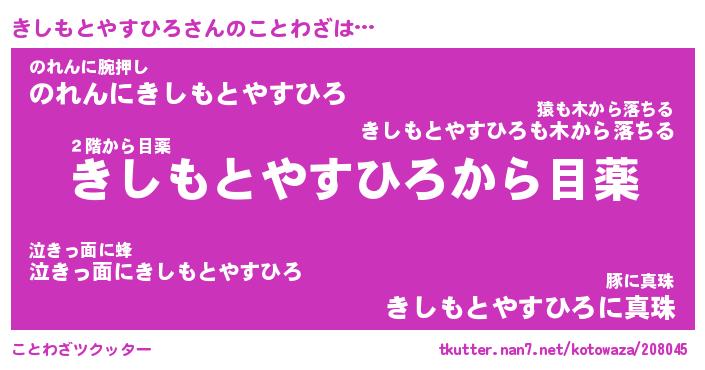 | 胡散臭い通販商品みたいなあだ名 | 『モテモテ間違いなし霊験あらたかなお札…その名も「きしもとやすひろ」』 |