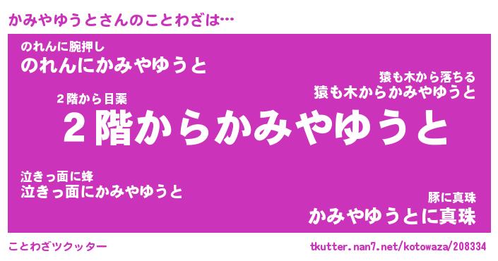 | 胡散臭い通販商品みたいなあだ名 | 『必ず成功する霊験あらたかなお札…その名も「かみやゆうと」』 |