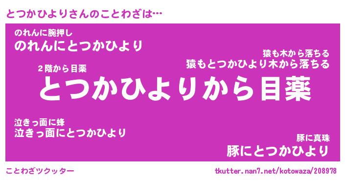 | 胡散臭い通販商品みたいなあだ名 | 『億万長者になれる霊験あらたかなお札…その名も「とつかひより」』 |