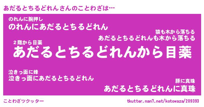 | 胡散臭い通販商品みたいなあだ名 | 『億万長者になれるブレスレット…その名も「あだるとちるどれん」』 |