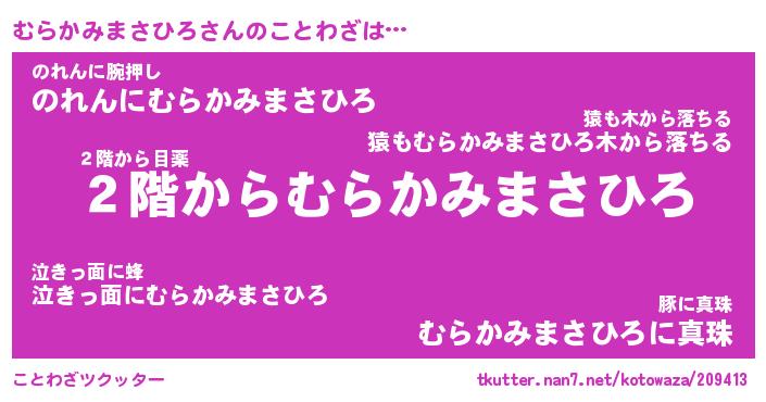 | 男性向けラノベタイトル風あだ名 | 『むらかみまさひろの憂鬱』 |