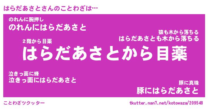 | 胡散臭い通販商品みたいなあだ名 | 『億万長者になれるブレスレット…その名も「はらだあさと」』 |