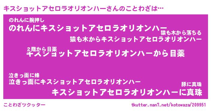 | 女子向けラノベタイトル風あだ名 | 『キスショットアセロラオリオンハー姫と円卓の騎士』 |